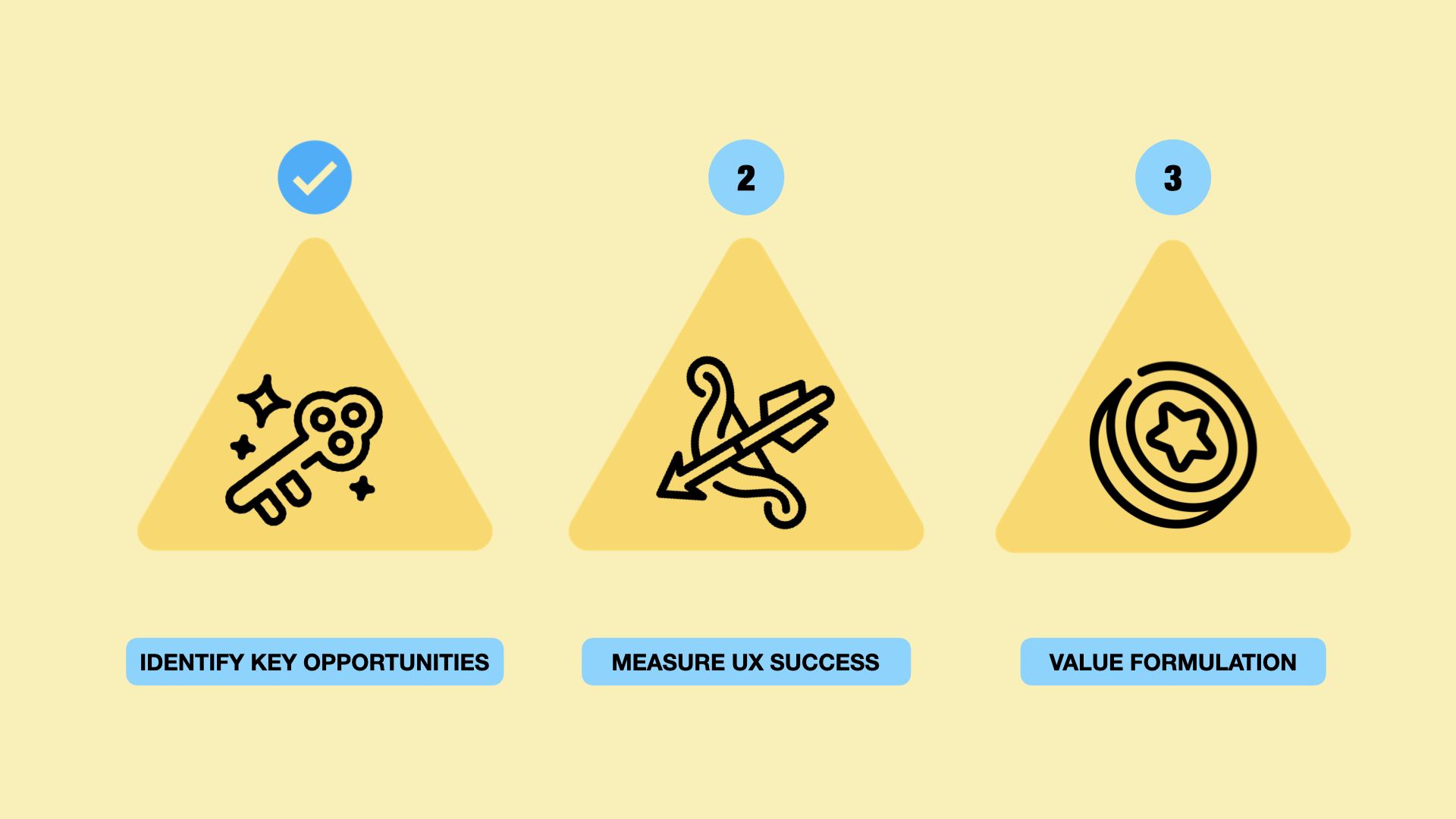We’ve now covered the three sides of the growth triangle through design = identifying key opportunities, measuring your design impact with right metrics and then highlighting the additional value of your design through value formulation.