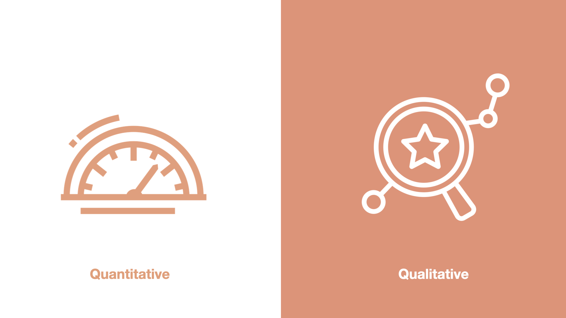 There are 2 types of data you can have about the people who are using your experience. Quant data and qual data. Qual data is more anecdotal, rich, with words - like interviews and photos etc. Quant is numbers.