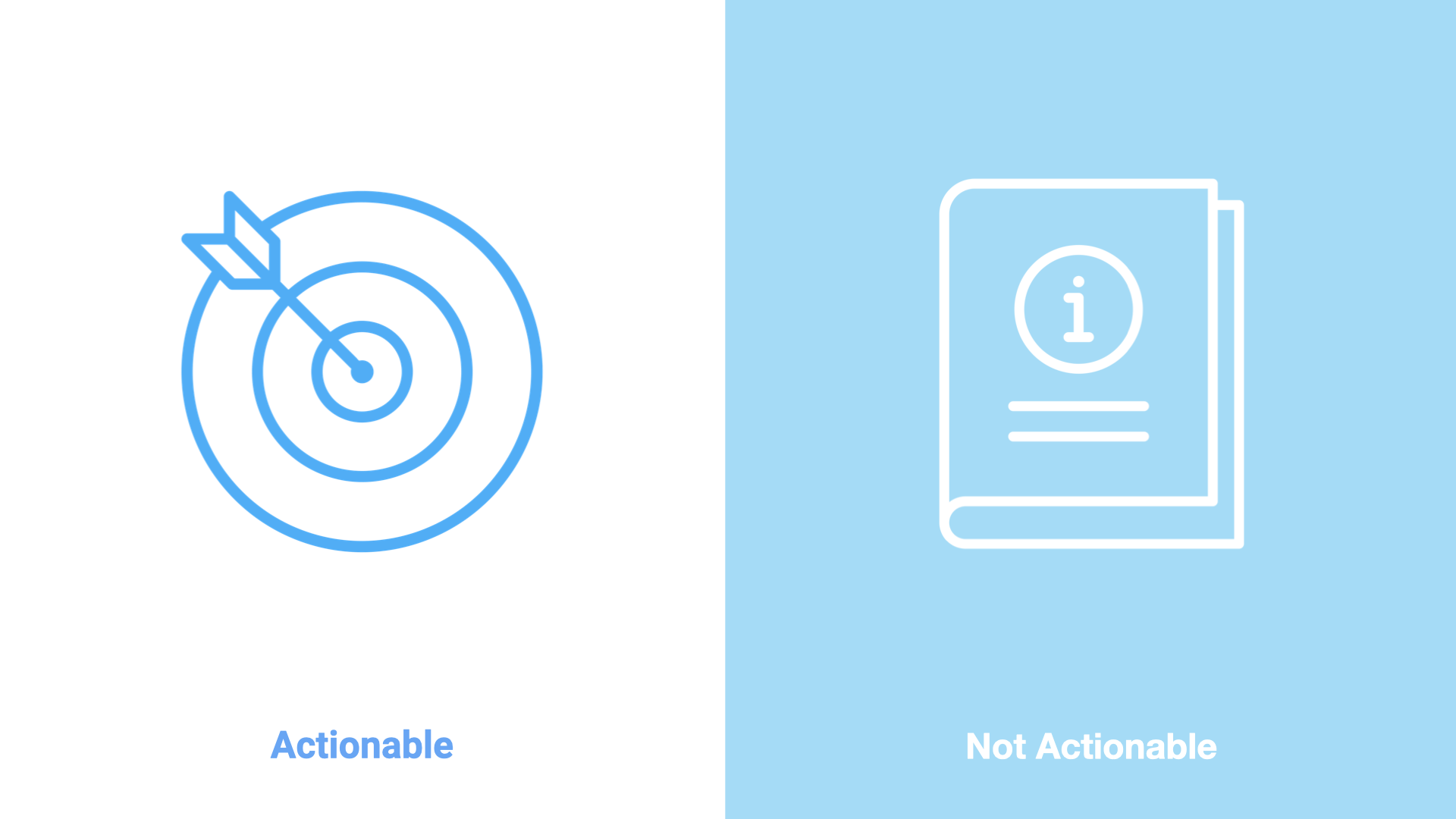 Actionable vs non-actionable or informational metrics is another way to look at metrics. Not all metrics are actionable for us as designers.Non actionable metrics are just informational metrics. An actionable metric is time spent on filling a form. We can use design to reduce time spent, so that is actionable.