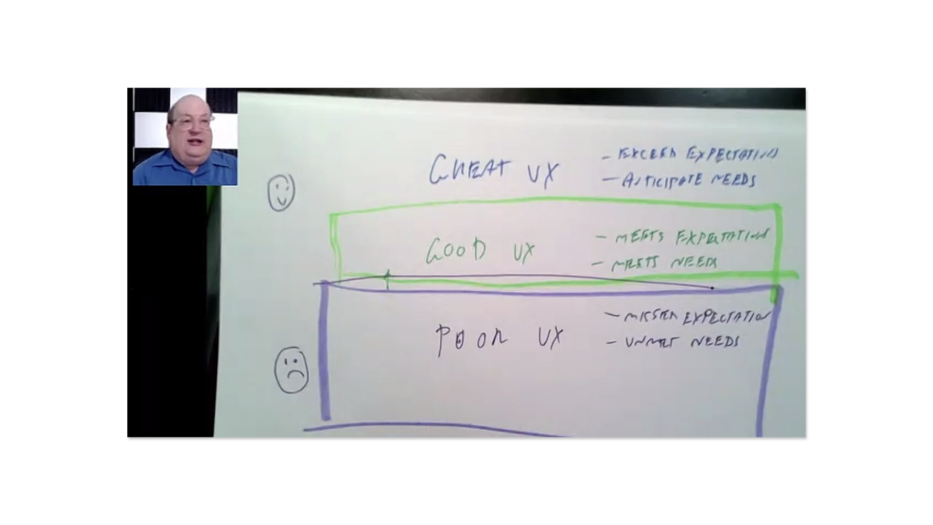 I attended a talk in 2023 where Jared Spool said we can grow from poor UX, to good UX, to great UX. He defined poor ux as missed expectations, unmet needs. Good UX is meets expectations and meets needs. Great UX is exceeds expectations and ancticipates needs.